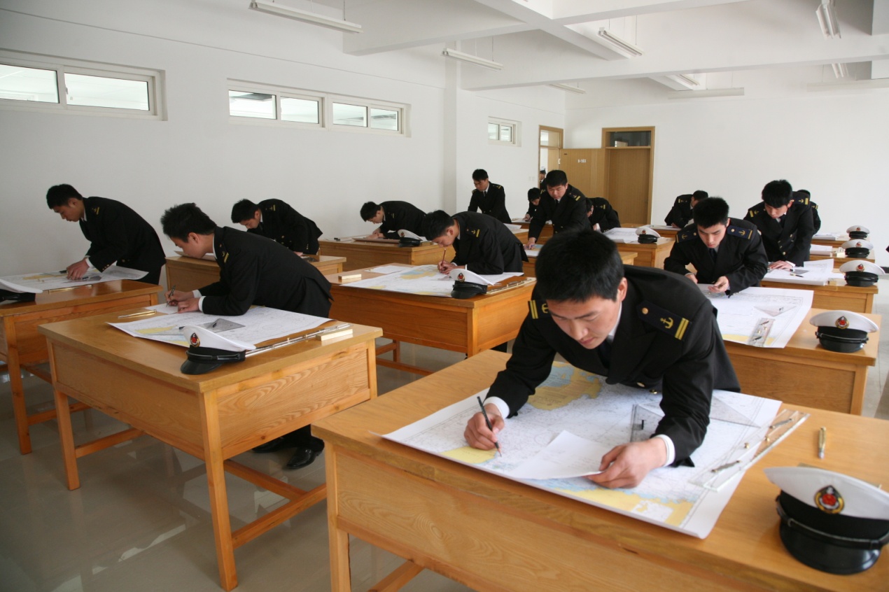海图作业室主要承担海船驾驶员航线设计项目,考前评估中的相关实训教学任务。承担着《航海学》、《航海学技能训练》实验大纲规定的相关实验教学任务,进行《海图作业》、《航线设计》、《船舶定位》、《航次计划》等专项训练。