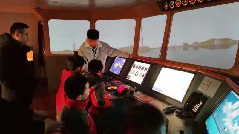 最后,小客人们还参观了船舶自动化机舱、轮机模拟器、急救实训室、雷达实训室、罗经实训室等30几个实训室。
